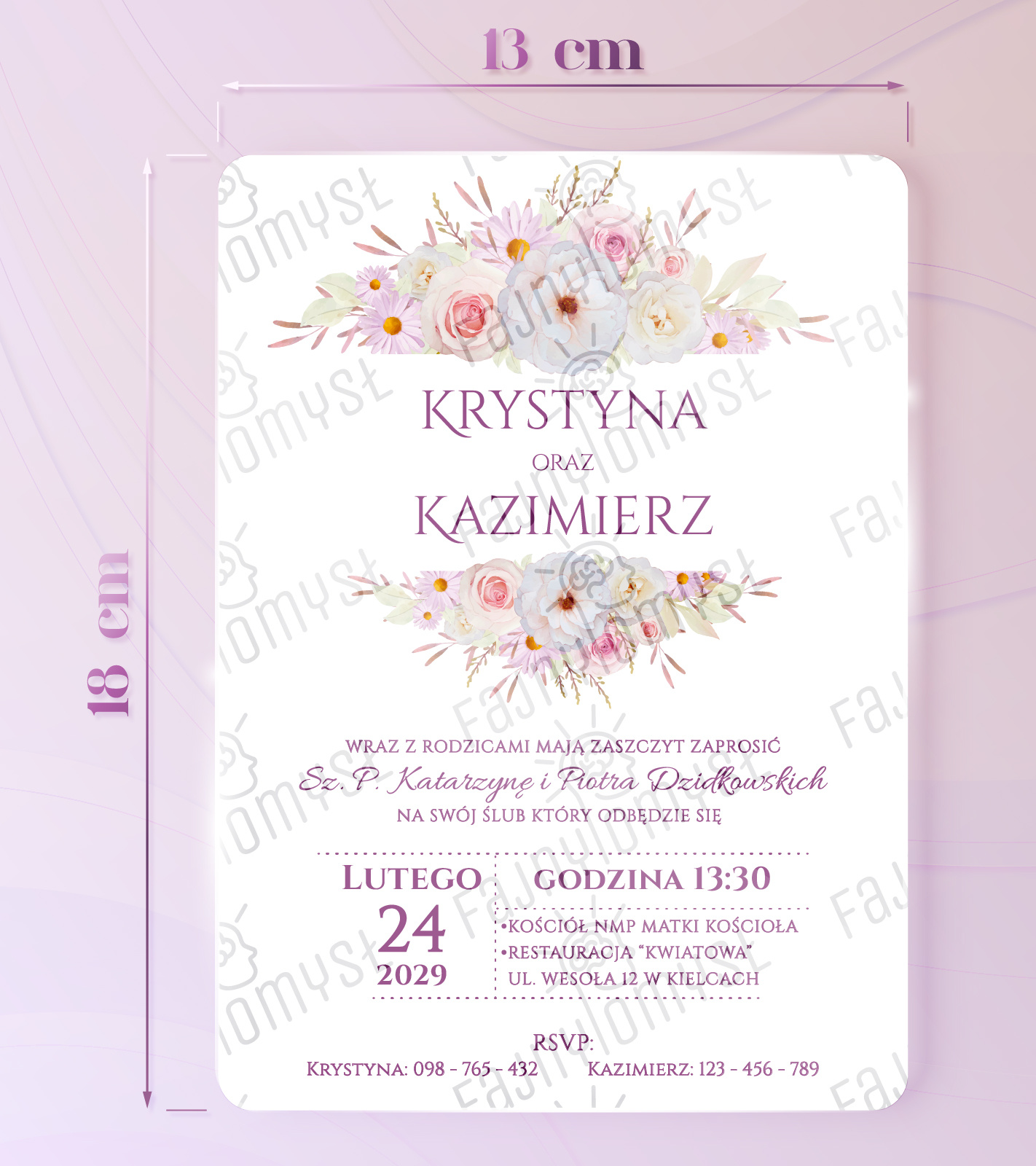 Aby zamówić zaproszenia, należy wysłać dwa pliki tekstowe