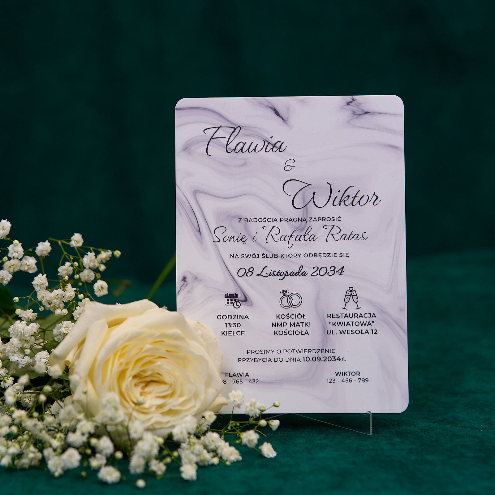 - Zaproszenia ślubne PREMIUM wykonane na białym SZKLE AKRYLOWYM o matowym wykończeniu to nowoczesna i elegancka forma, która zaskoczy Twoich gości.