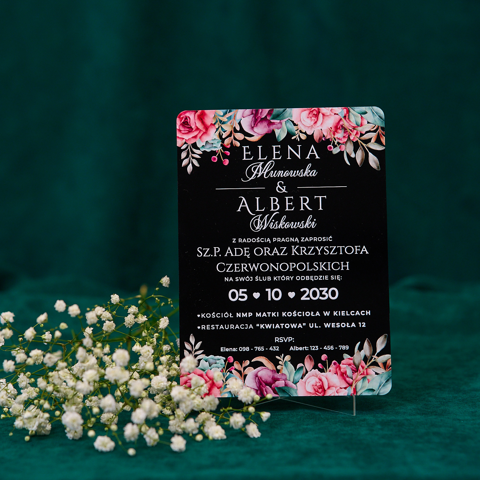 Zaproszenia ślubne PREMIUM wykonane na czarnym błyszczącym SZKLE AKRYLOWYM