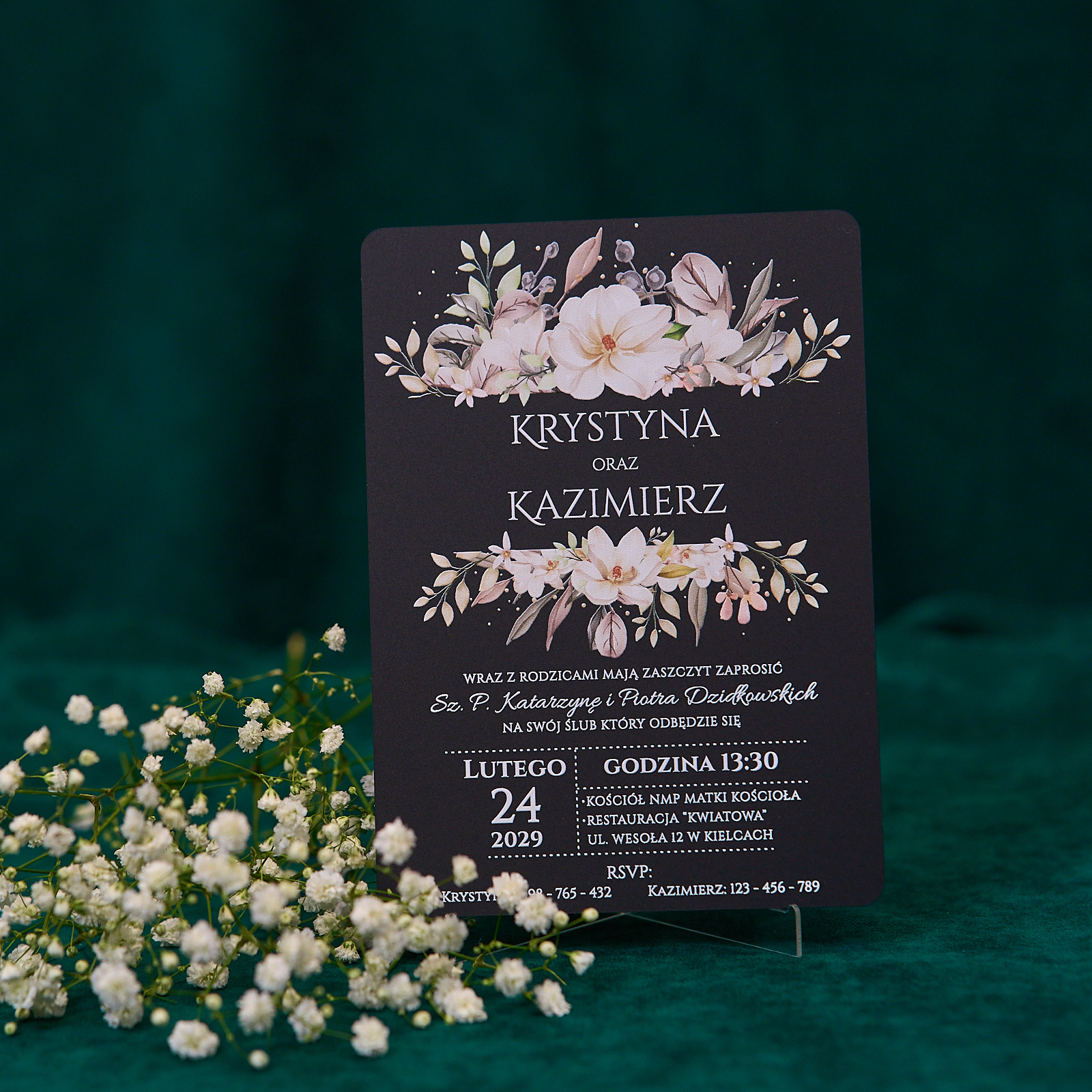Zaproszenia ślubne PREMIUM wykonane na czarnym SZKLE AKRYLOWYM