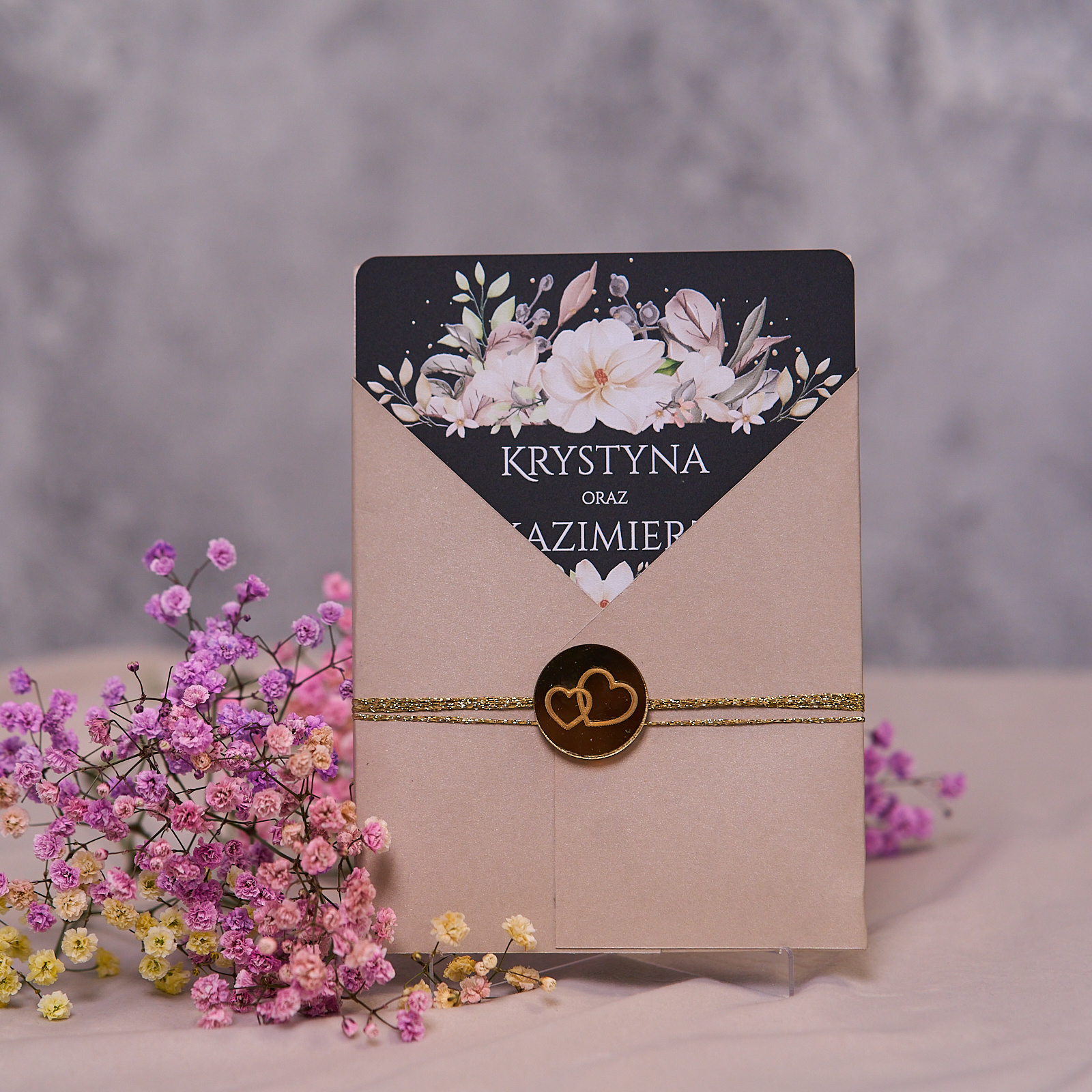 Do zaproszeń oferujemy dopasowane do naszego formatu efektowne koperty dostępne w zakładce "Koperty"