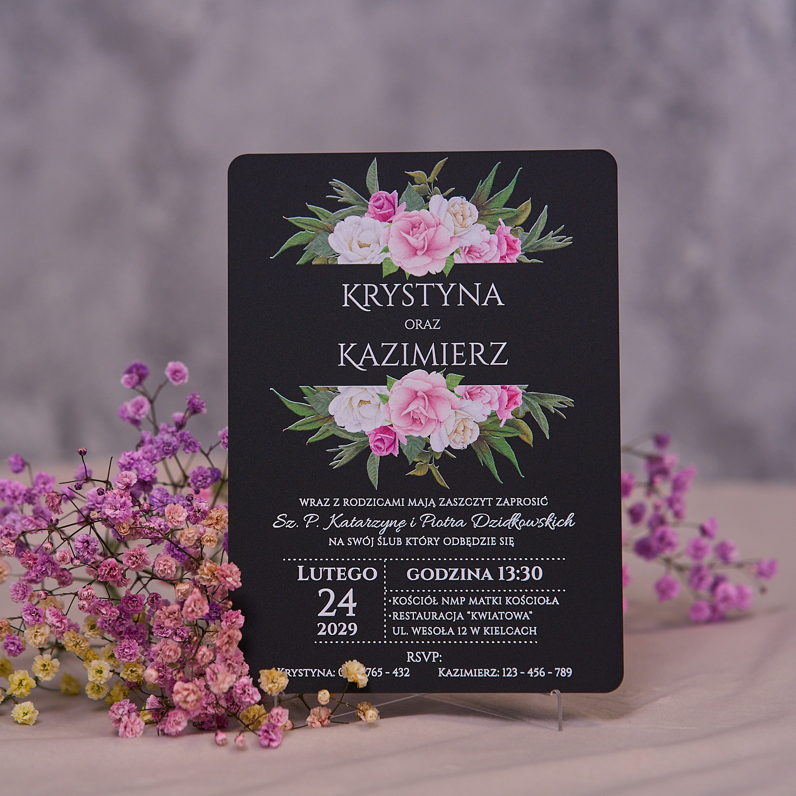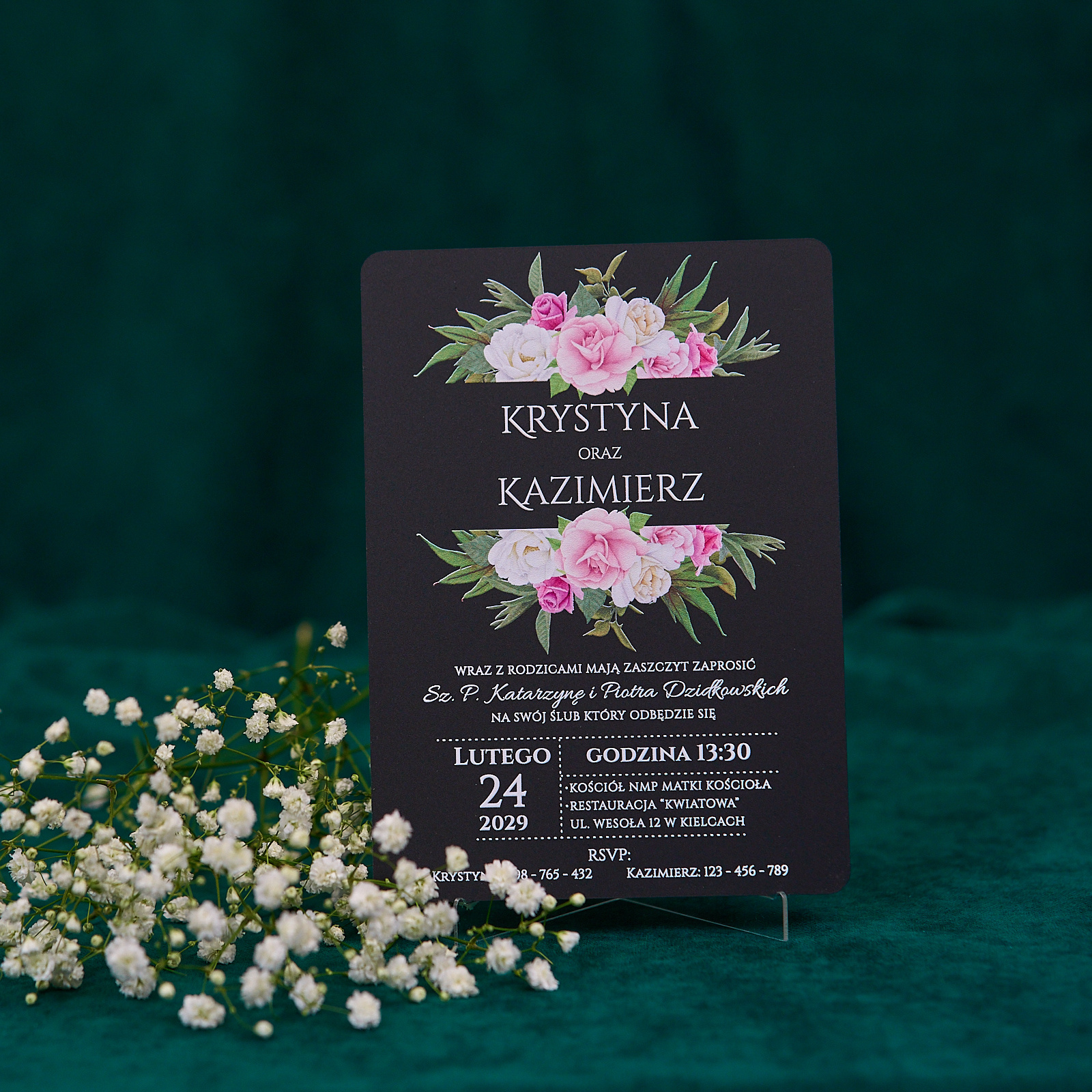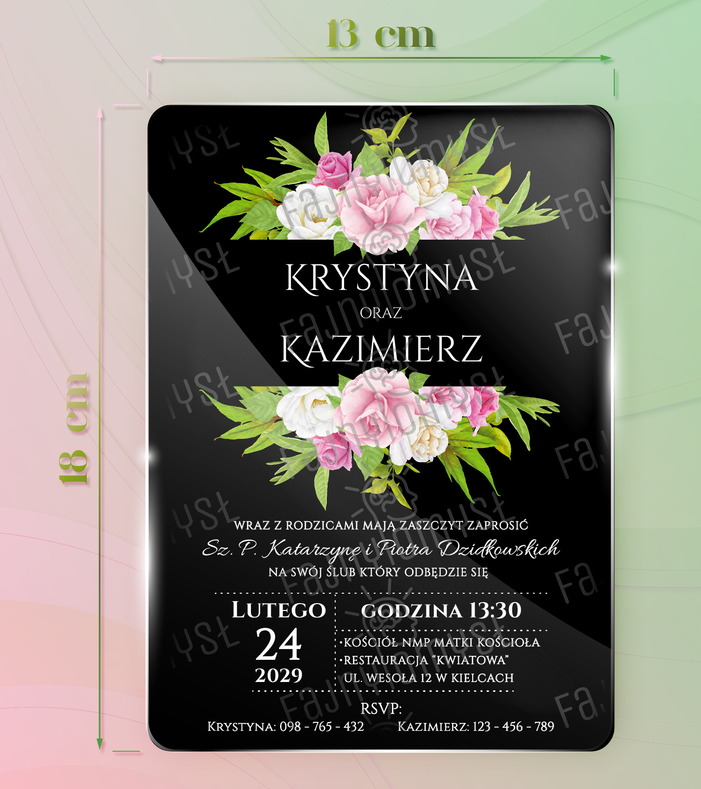 Zaproszenia ślubne PREMIUM wykonane na czarnym SZKLE AKRYLOWYM