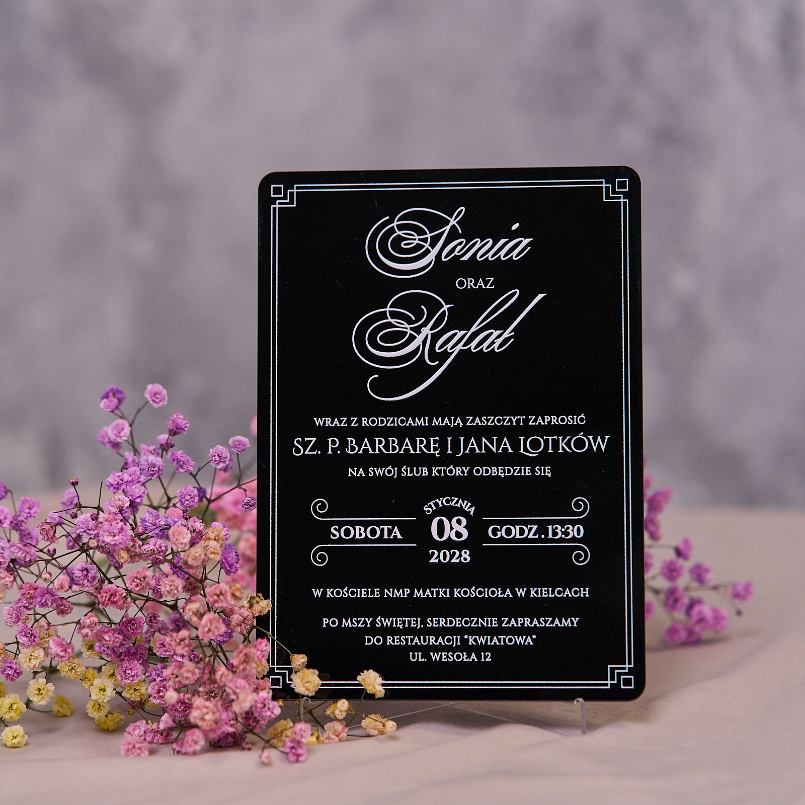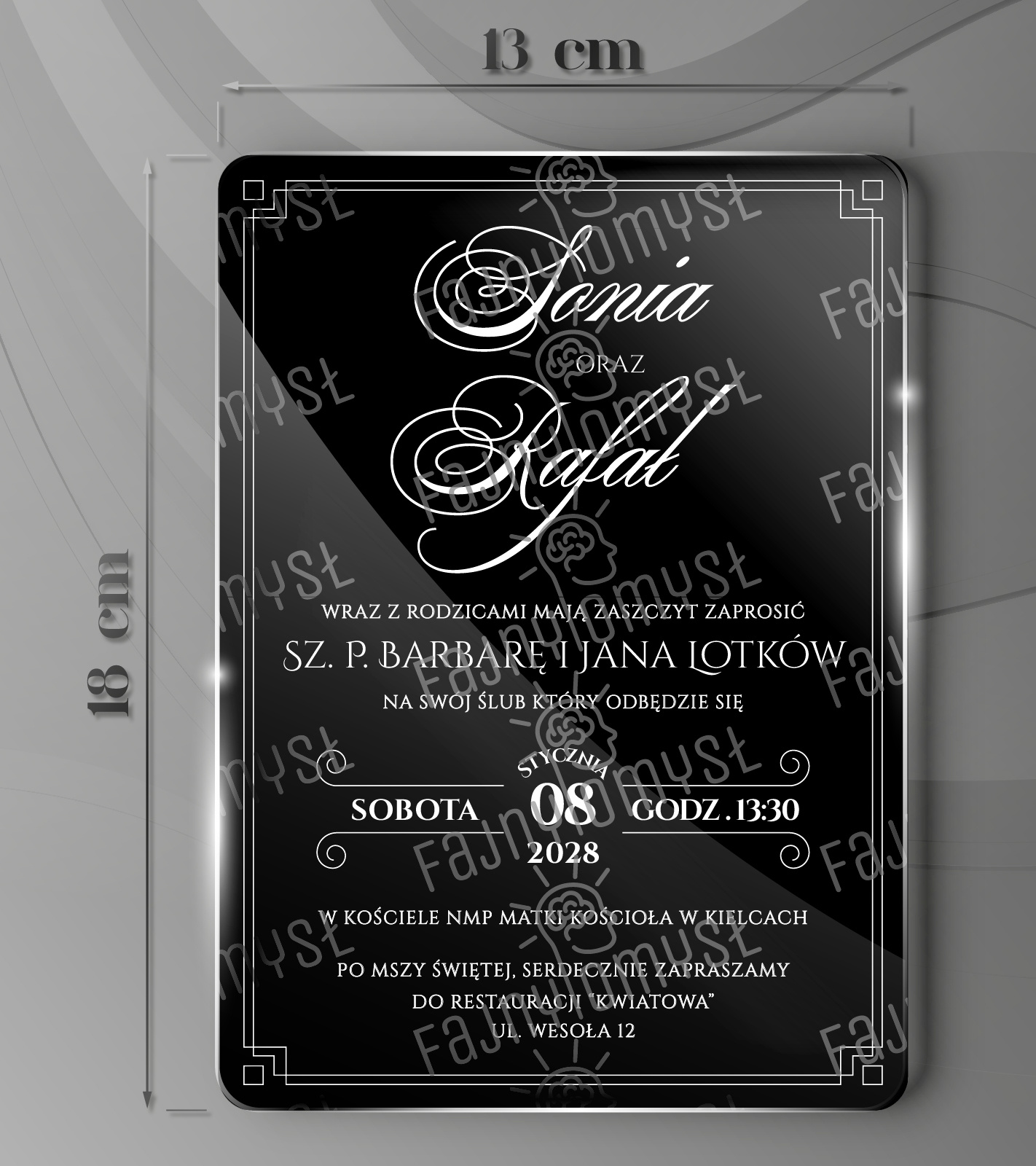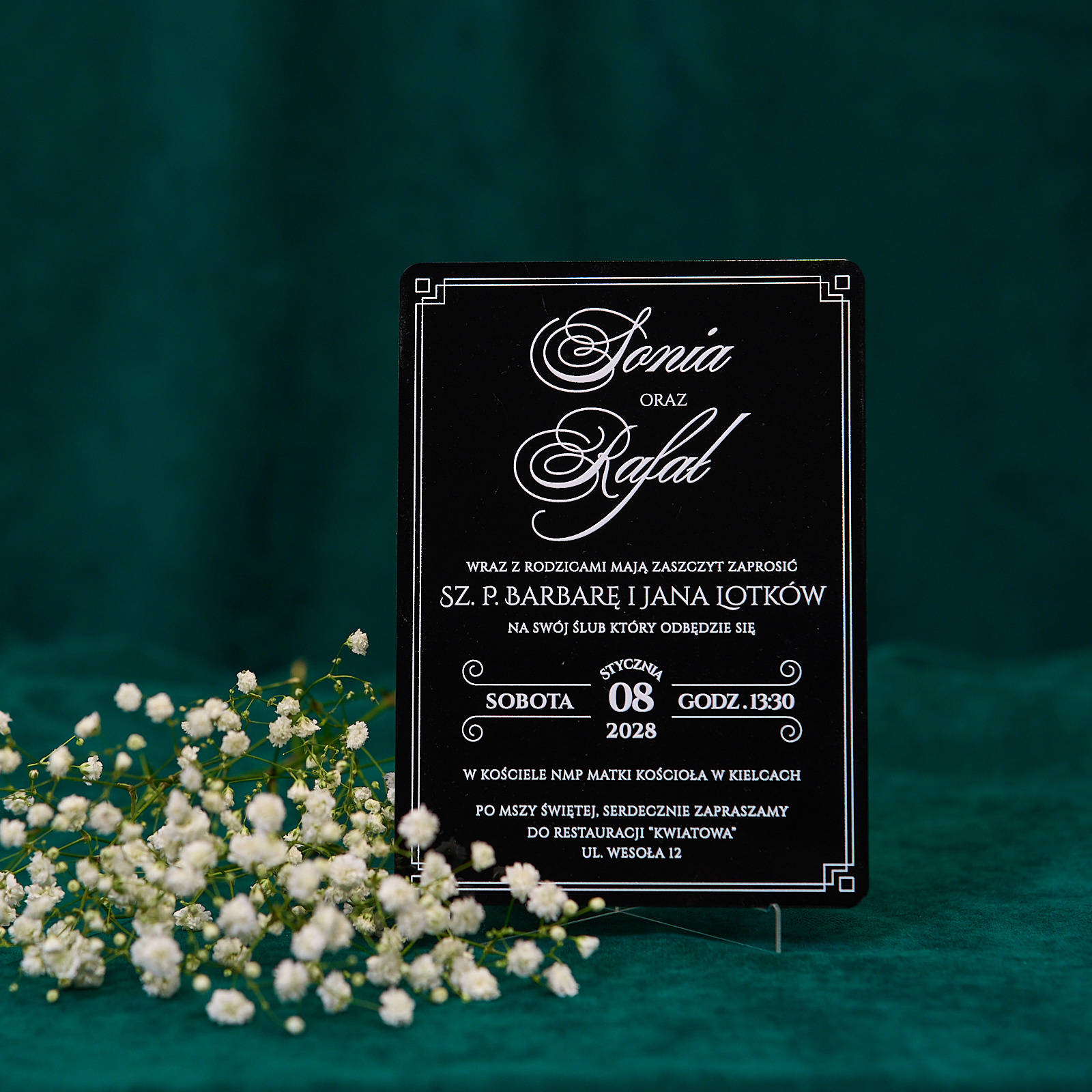 Zaproszenia ślubne PREMIUM wykonane na czarnym SZKLE AKRYLOWYM
