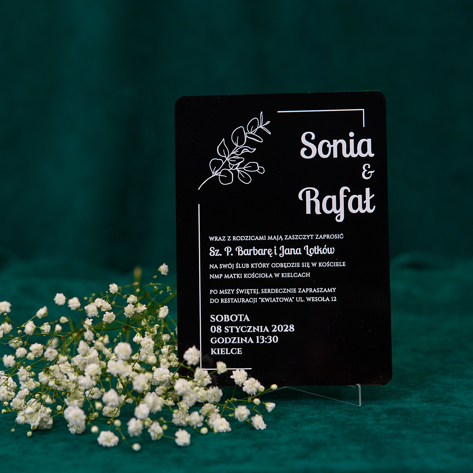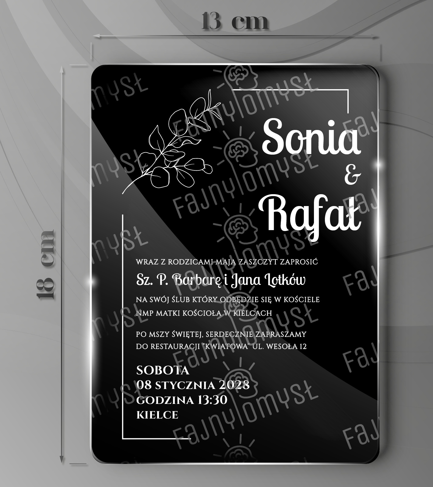 Zaproszenia ślubne PREMIUM wykonane na czarnym SZKLE AKRYLOWYM