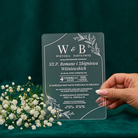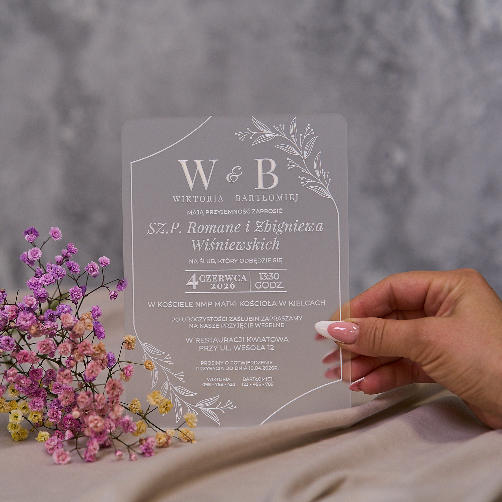Zaproszenia ślubne PREMIUM wykonane na SZKLE AKRYLOWYM satynowym