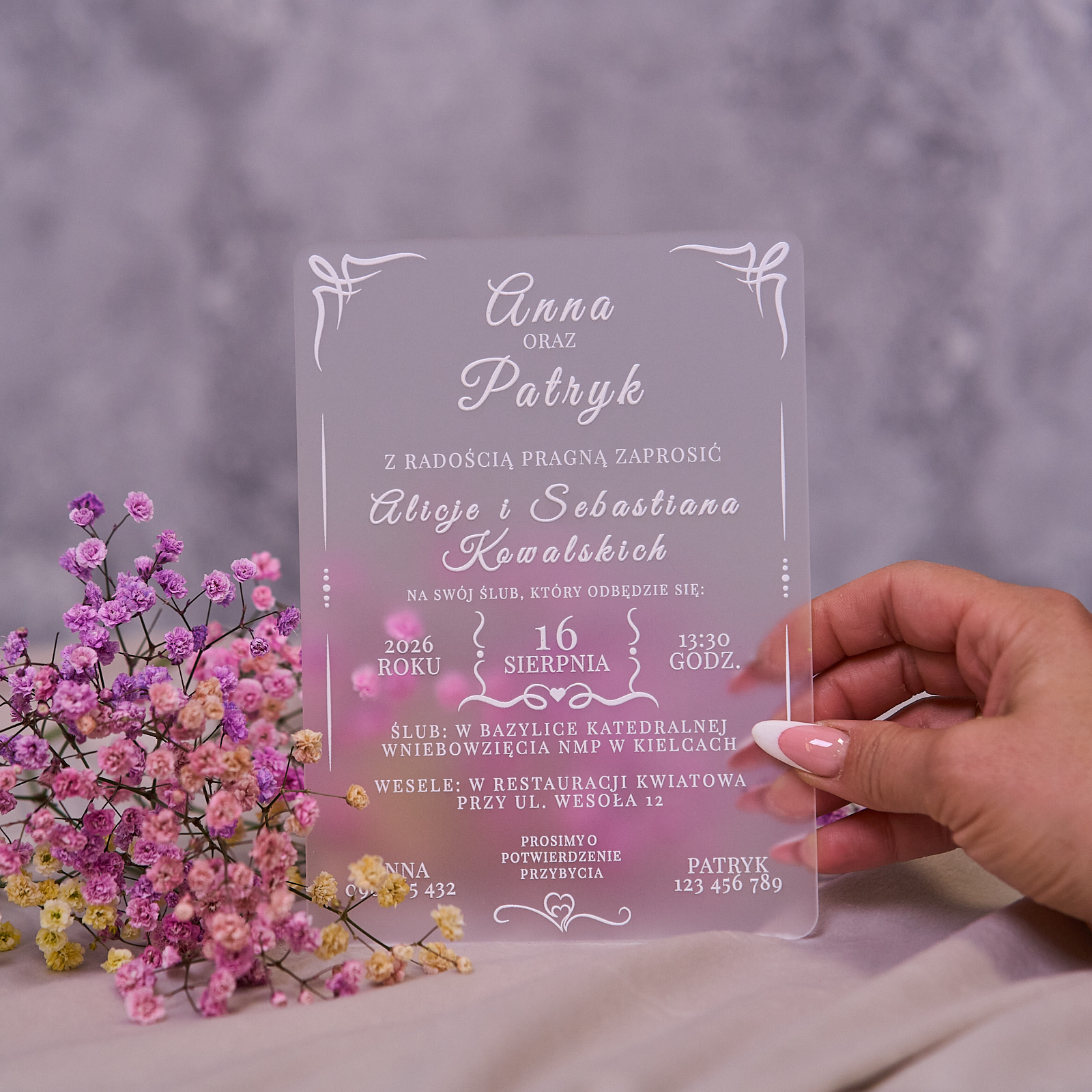 Zaproszenia ślubne PREMIUM wykonane na SZKLE AKRYLOWYM satynowym