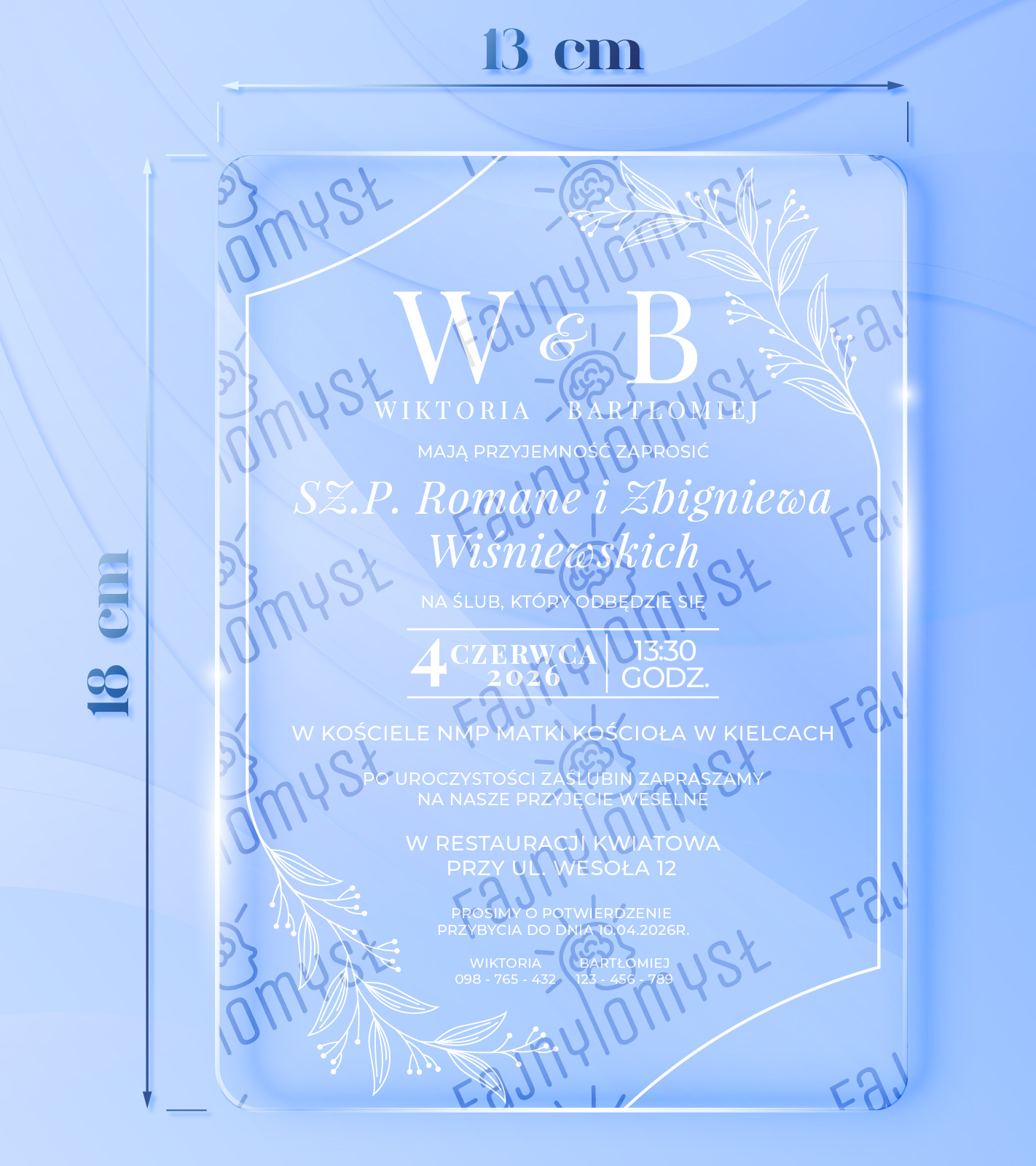 Zaproszenia ślubne PREMIUM wykonane na SZKLE AKRYLOWYM satynowym-ZS04