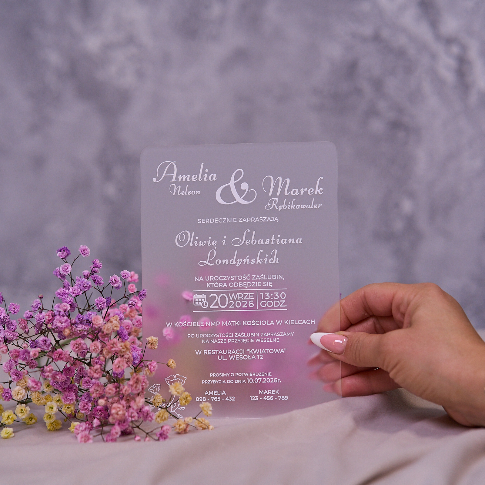 Zaproszenia ślubne PREMIUM wykonane na SZKLE AKRYLOWYM satynowym