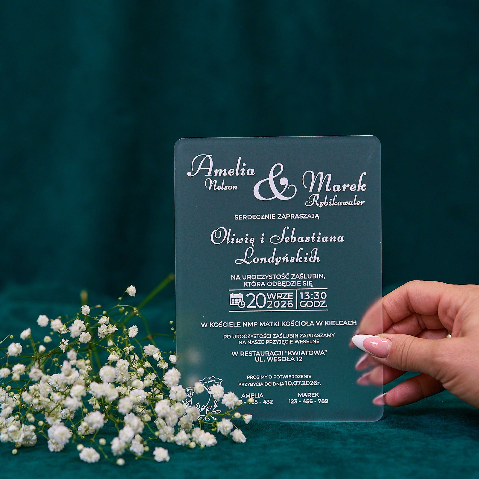 Zaproszenia ślubne PREMIUM wykonane na SZKLE AKRYLOWYM satynowym-ZS05D