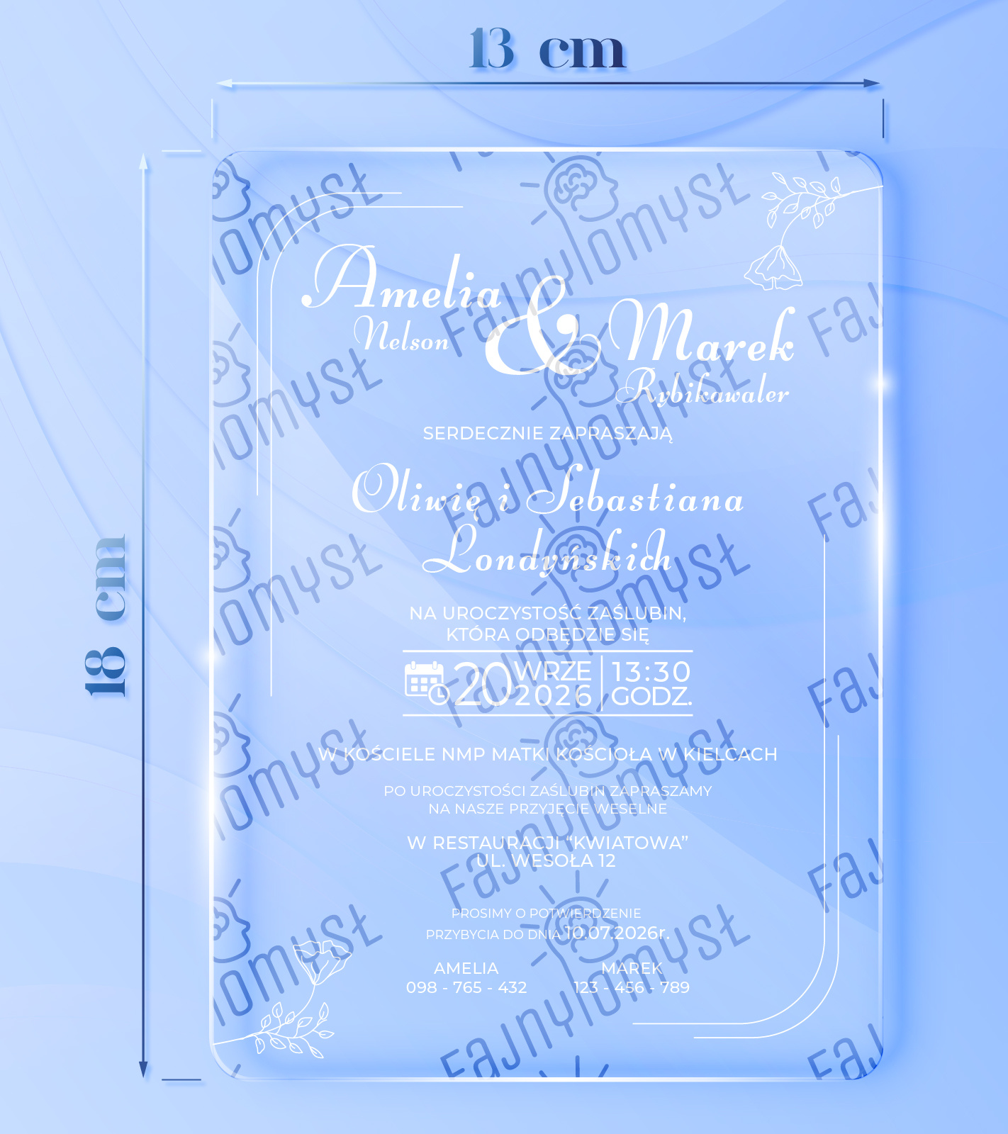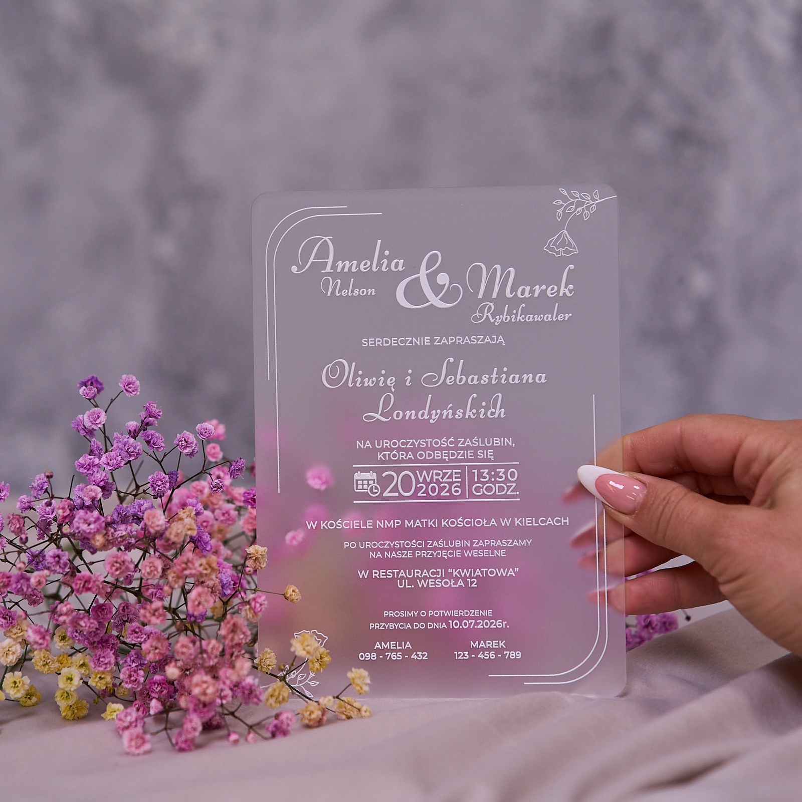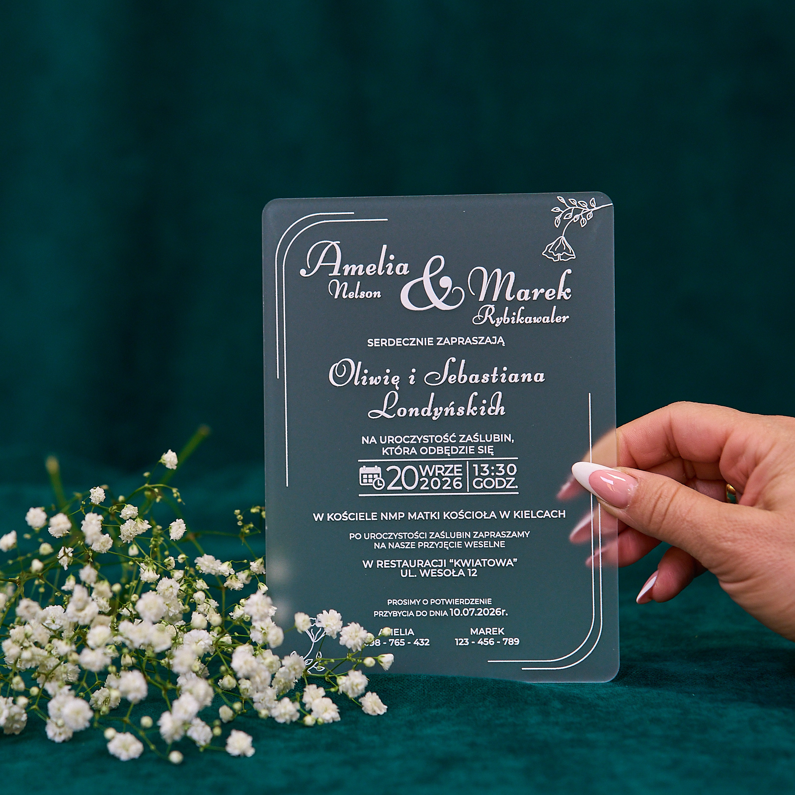 Zaproszenia ślubne PREMIUM wykonane na SZKLE AKRYLOWYM satynowym-ZS05F