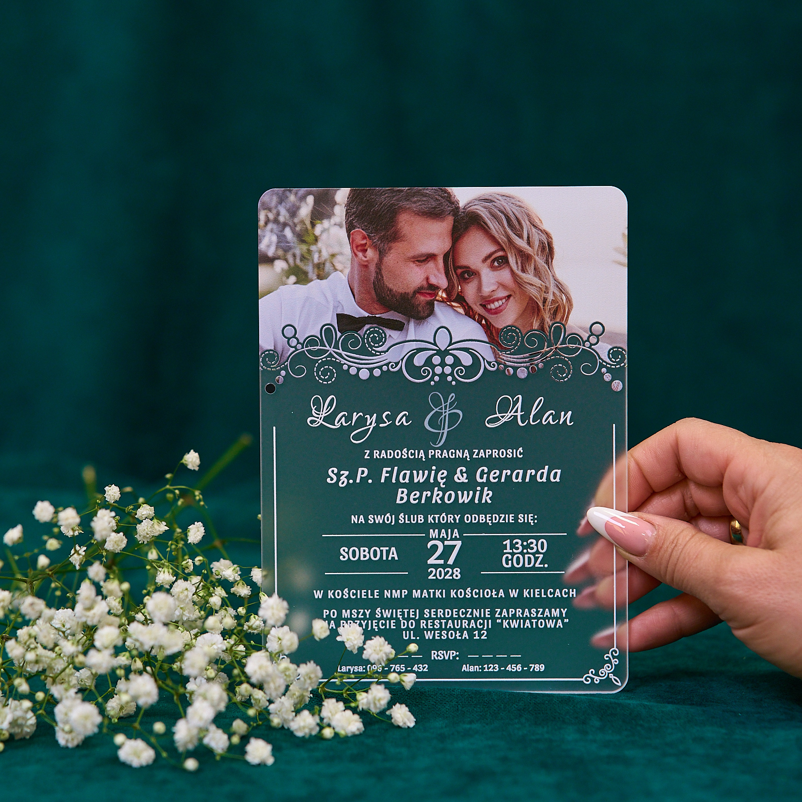- Zaproszenia ślubne PREMIUM wykonane na SZKLE AKRYLOWYM satynowym to nowoczesna i elegancka forma, która zaskoczy Twoich gości.