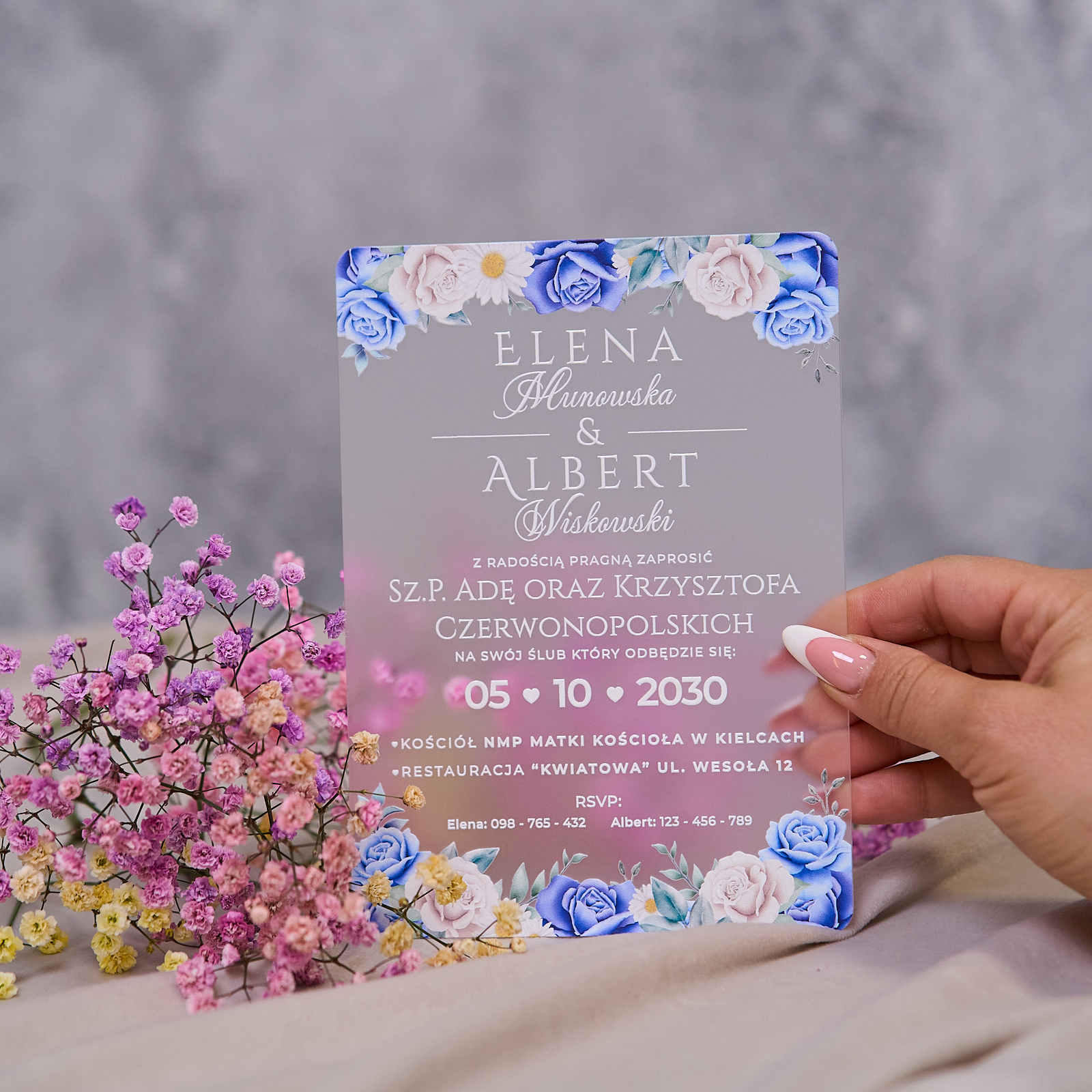 Zaproszenia ślubne PREMIUM wykonane na SZKLE AKRYLOWYM satynowym