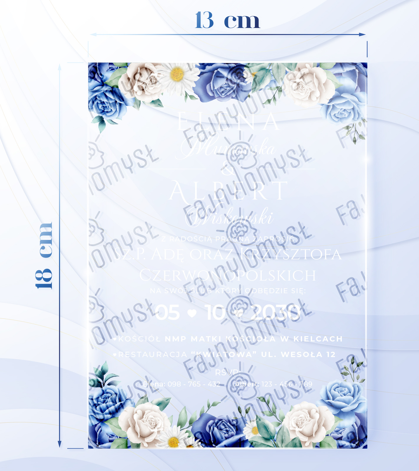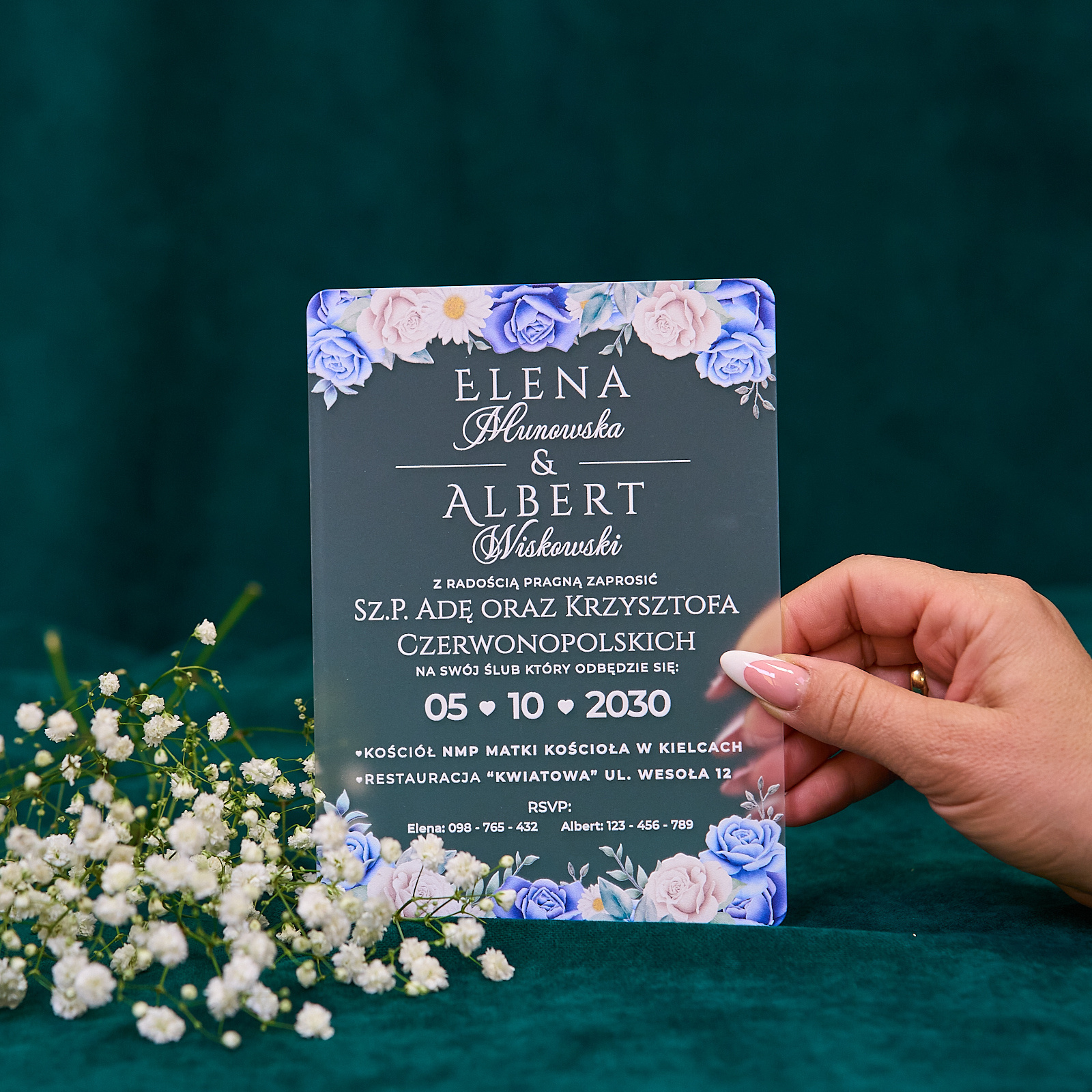 Zaproszenia ślubne PREMIUM wykonane na SZKLE AKRYLOWYM satynowym-ZS17B