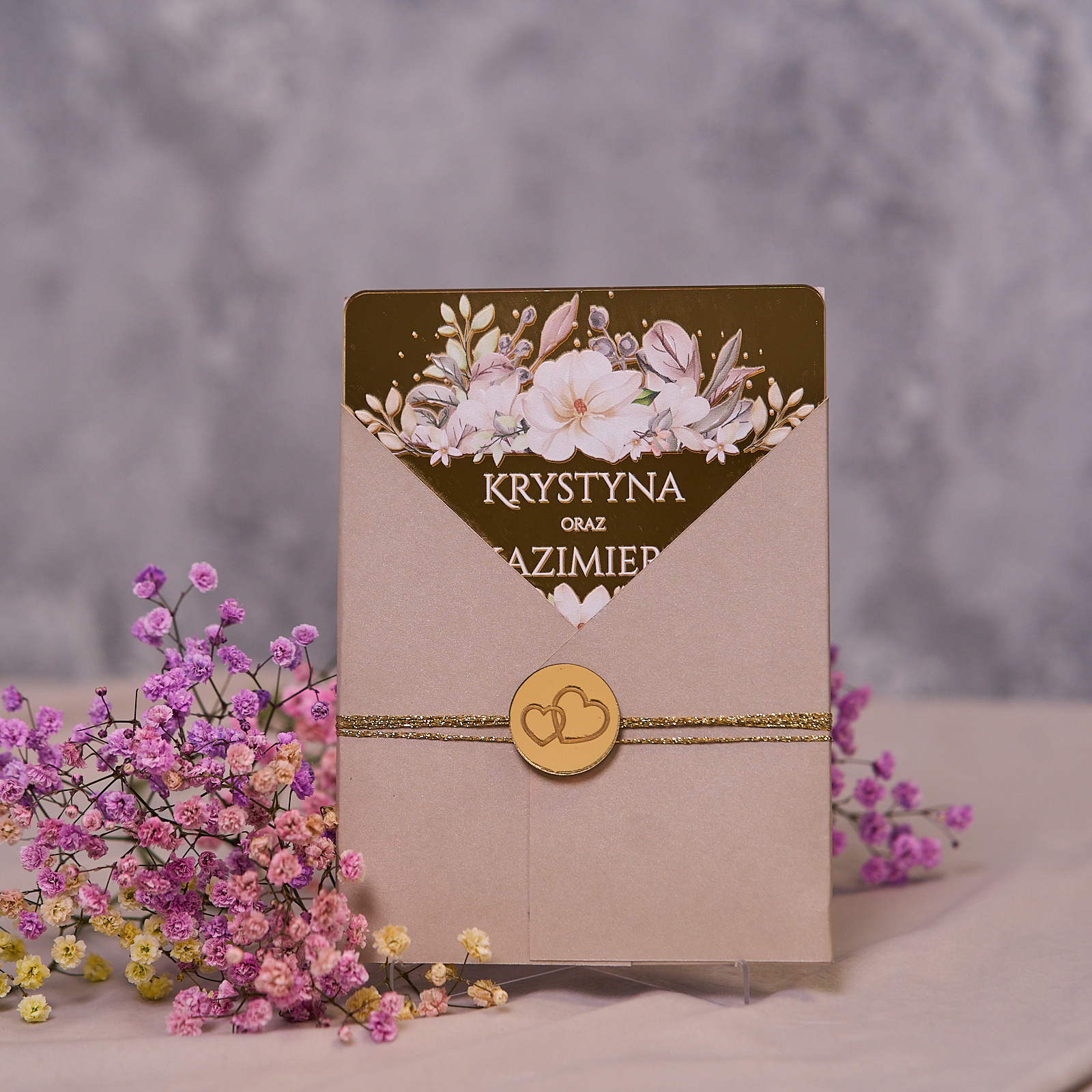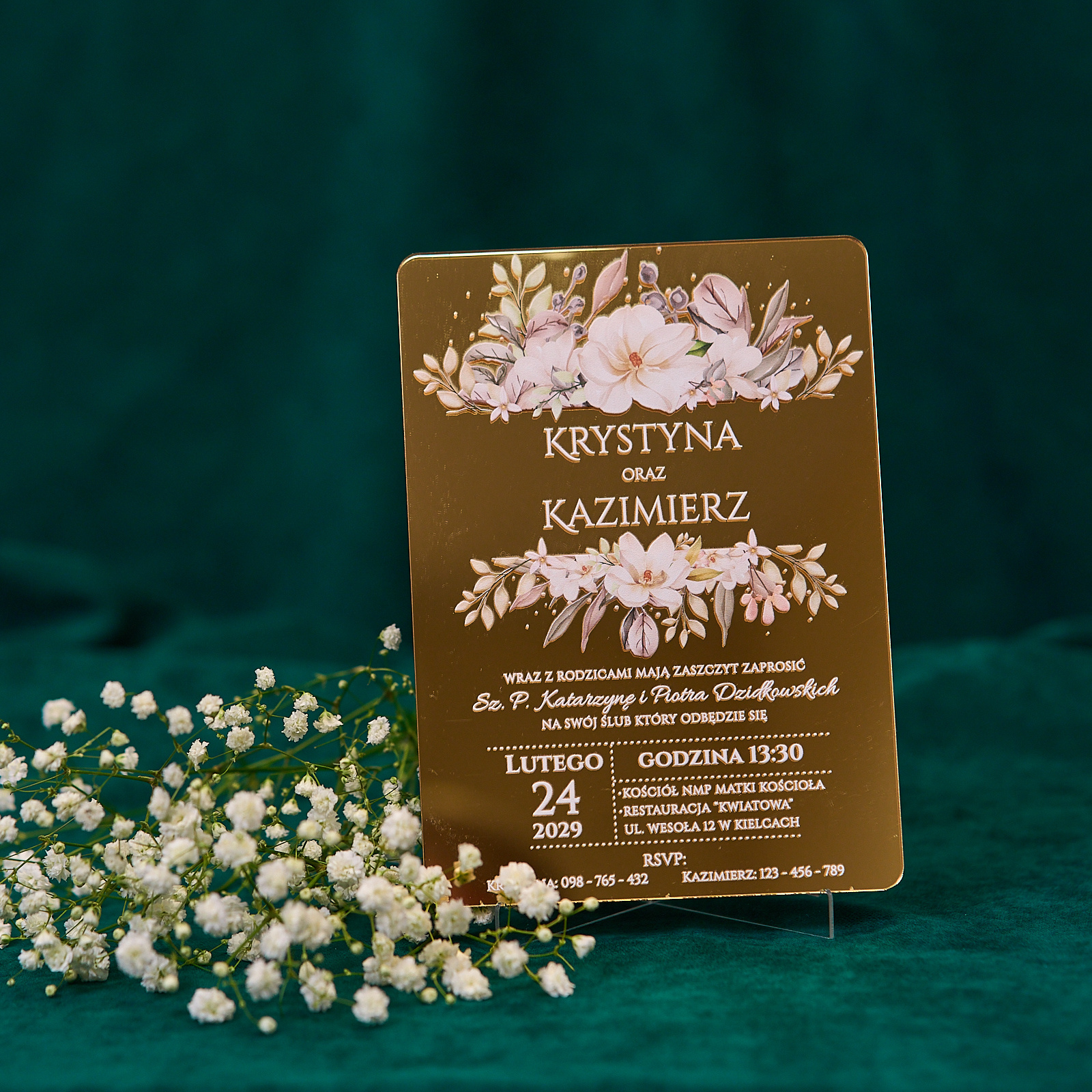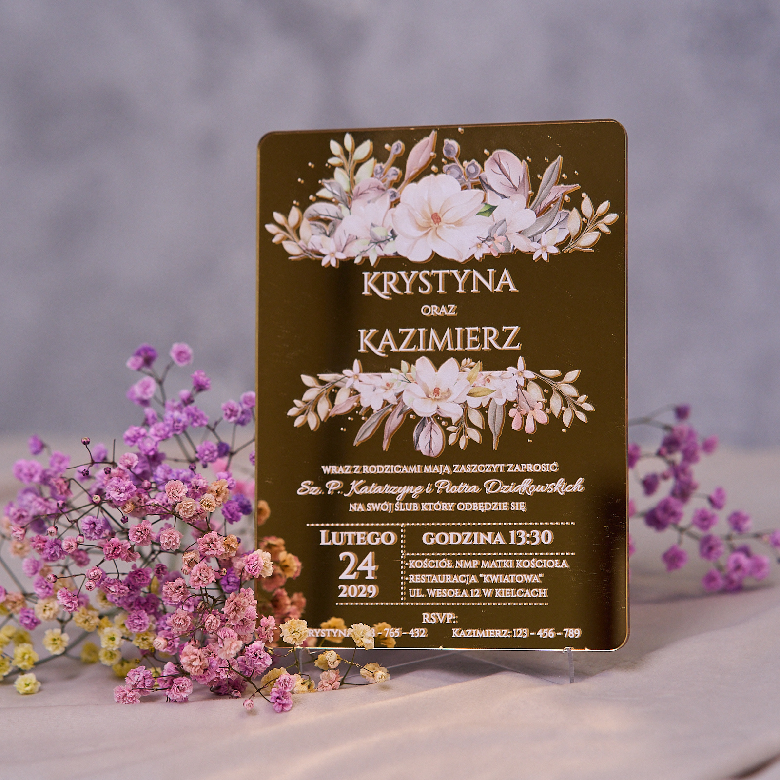 Zaproszenia ślubne PREMIUM wykonane na SZKLE AKRYLOWYM złotym lustrzanym