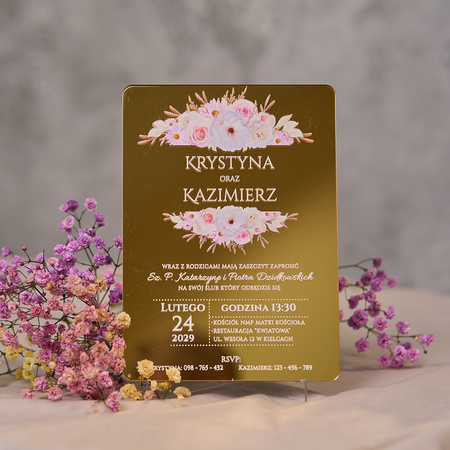Zaproszenia ślubne PREMIUM wykonane na SZKLE AKRYLOWYM złotym lustrzanym-ZZ13B